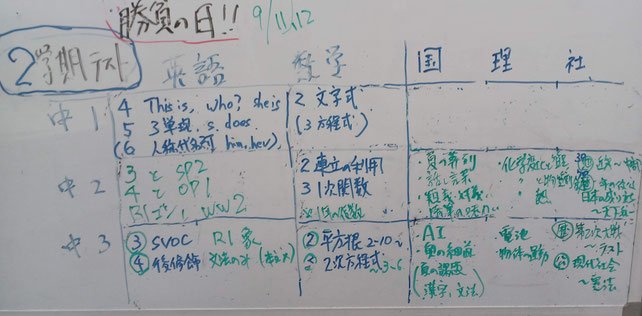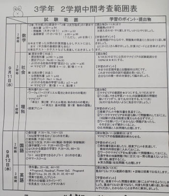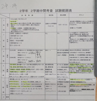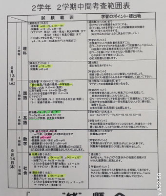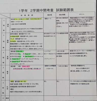 2024年度の2学期中間テスト範囲が発表されました! 8/28