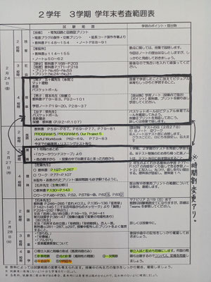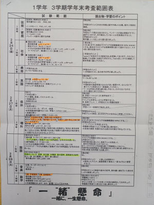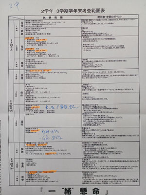 学校からテスト範囲表を受け取ったら、教室に持ってきてください。コピーも。