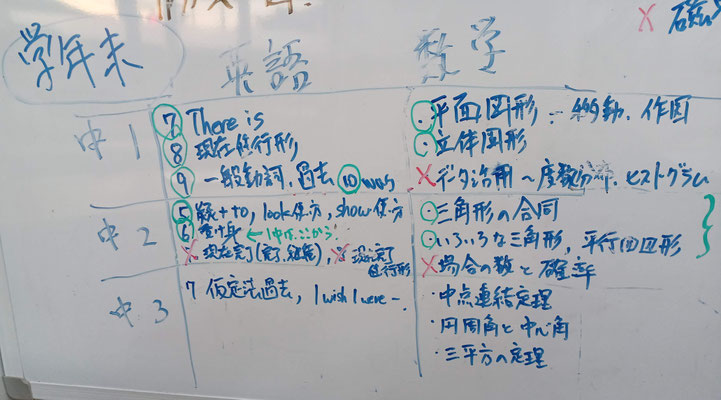 発表初日に、全学年のテスト範囲が揃いました。ありがとうございました。