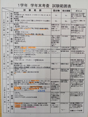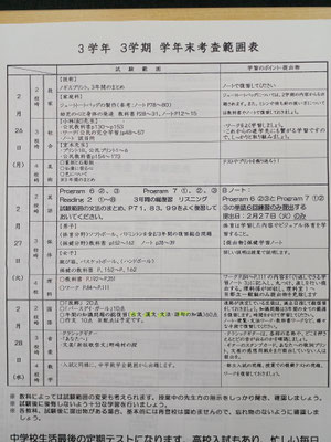 発表翌日の水曜日には、全学年のテスト範囲表が揃いました。ご協力ありがとうございました。